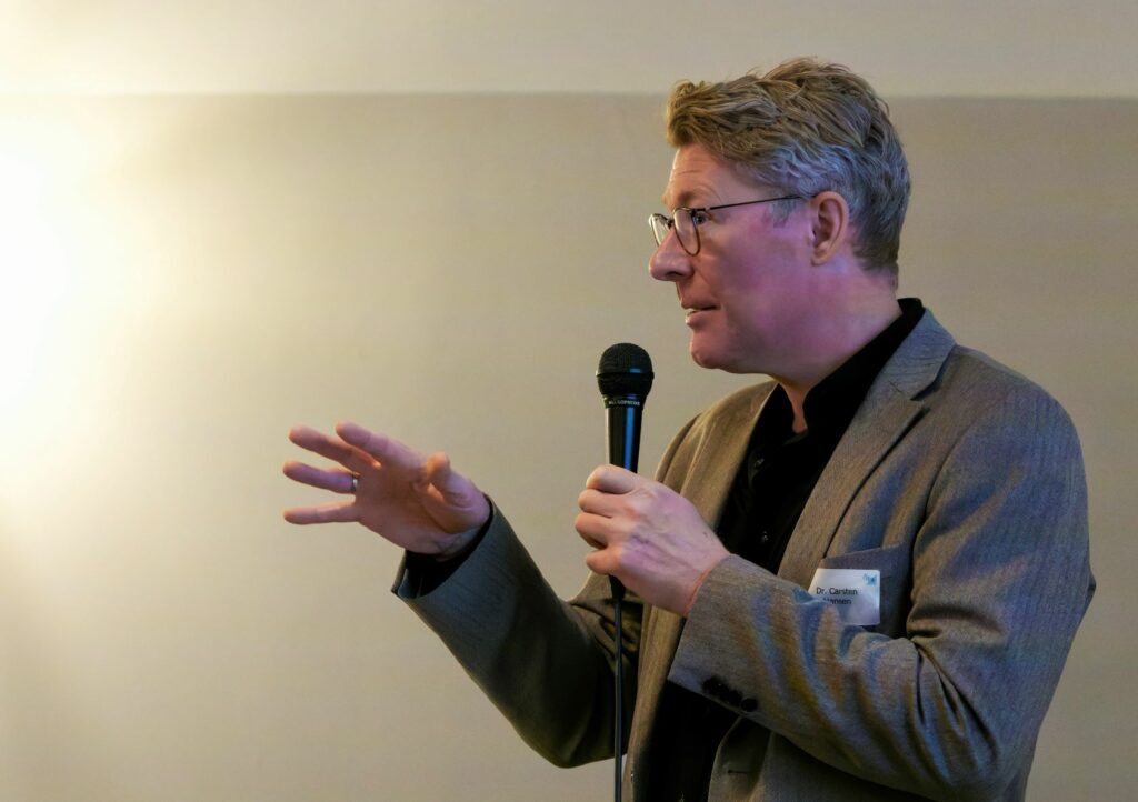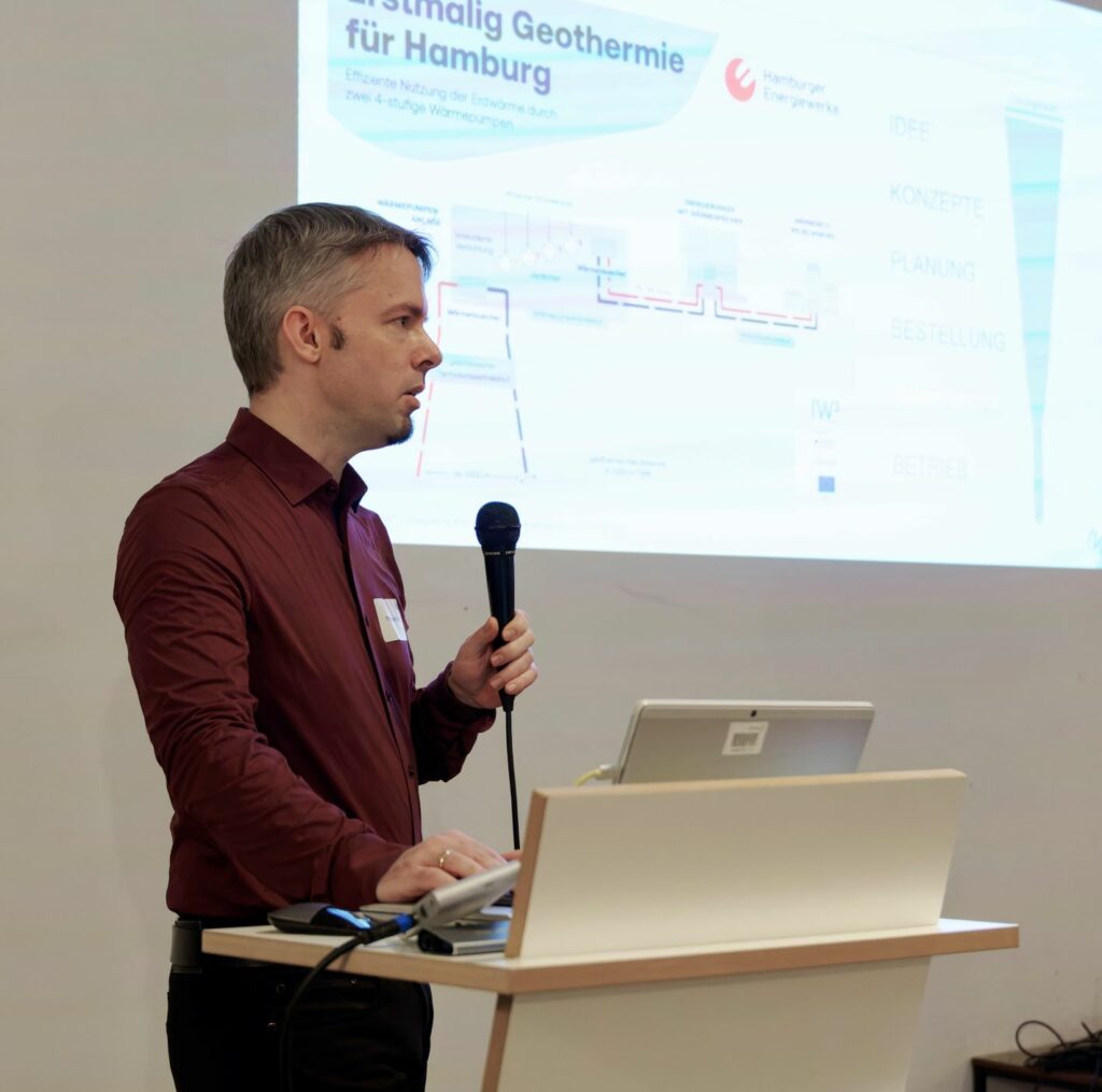 Im Anschluss rückte Thomas Havran von den Hamburger Energiewerken die parallel stattfindenden Maßnahmen zur Integration in die bestehende Infrastruktur in den Blick – all das, was man nicht auf den ersten Blick sieht, das aber unverzichtbar für ein funktionierendes Wärmenetz ist. Im Energiebunker sind Planung, Genehmigung und Ausschreibung zentraler Komponenten wie des neuen Speichers oder der Druckhaltung weit gediehen, und auch die Leittechnik, die später das gesamte System steuern soll, befindet sich in der Vorbereitung. Havran sprach auch über die Herausforderungen, die diesen Teil des Reallabors derzeit prägen: Detailabstimmungen, Schnittstellenarbeit, Netzmodellierung. Doch gerade diese Phase legt die Grundlagen für einen effizienten und robusten Betrieb – und schafft die Voraussetzung, verschiedene Energiequellen intelligent zu verbinden.