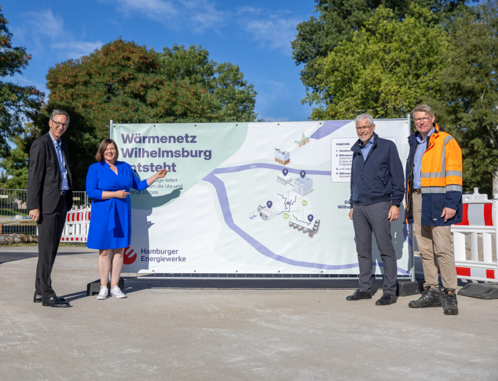 Um die klimafreundliche Fernwärmeversorgung auf Hamburgs größter Elbinsel weiter auszubauen, arbeiten die Hamburger Energiewerke daran, zwei bereits existierenden Wärmenetze – Energiebunker und Energieverbund – zusammenzuschließen, schrittweise zu verdichten und auszubauen. Die Leitungsbauarbeiten für das so entstehende Verbundnetz Wilhelmsburg LINK kommen ebenfalls gut voran. Die Anbindungsleitung der Geothermie-Anlage an den Energiebunker wird insgesamt 1,4 Kilometer lang. Gut 80 Prozent sind schon gebaut, so dass sie noch in diesem Jahr fertiggestellt wird. Ein 35 Meter langer Tunnel zur Unterquerung des Bahndammes und der daneben liegenden Hauptverkehrsstraße, die größte Herausforderung für den Leitungsbau, wurde bereits erfolgreich in diesem Februar gebaut. LINK Auch die ersten 200 Meter der rund ein Kilometer langen Leitung zur Verbindung der beiden Wärmenetze – Energiebunker und Energieverbund sind bereits im Bau. Michael Prinz, Geschäftsführer der Hamburger Energiewerke, führte aus: „Wie geplant werden wir die drei neuen IBA-Quartiere Rathausviertel, Elbinselquartier und Spreehafenviertel sukzessive anschließen. Darüber hinaus sind wir in fortgeschrittenen Gesprächen mit Wohnungsbaugesellschaften über den Anschluss mehrgeschossiger Gebäude im Bestand.“